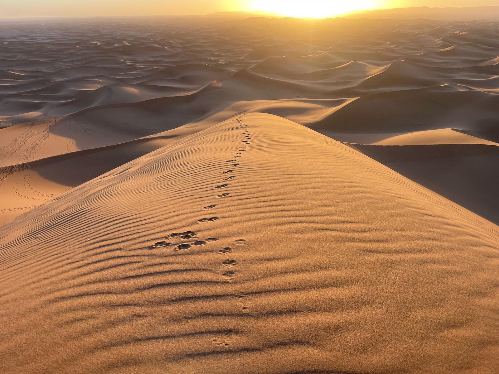 Die Wüste atmet Klarheit. Mit den ersten Strahlen der Sonne erwacht die unendliche Weite zum Leben – und mit ihr erwacht auch Dein Tun. Hier beginnt Dein Tun, Dein Weg, Deine Kreativität.Ich nehme dich mit – auf eine Reise des Lernens & Wachsens und zeige Dir die sagenhafte Marokkanische Wüste. Noch immer unterwegs; teile ich meine persönliche Geschichte mit Dir, gebe Dir Erfahrungen an die Hand und Habib geboren & aufgewachsen in der Sahara zeigt dir die wunderbare Wüste, sowie sorgt für Dein Wohl & Organisation – um Deinen Weg zu finden.